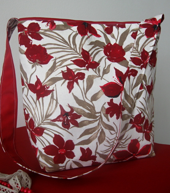 Beautifully made Crimson and beige floral handbag in an XL size