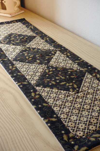 dečka běhounovitého tvaru na skříňku doplˇnuji výše uvedený vánoční ubrus, jak stylem patchworku, tak stejnými látkami
