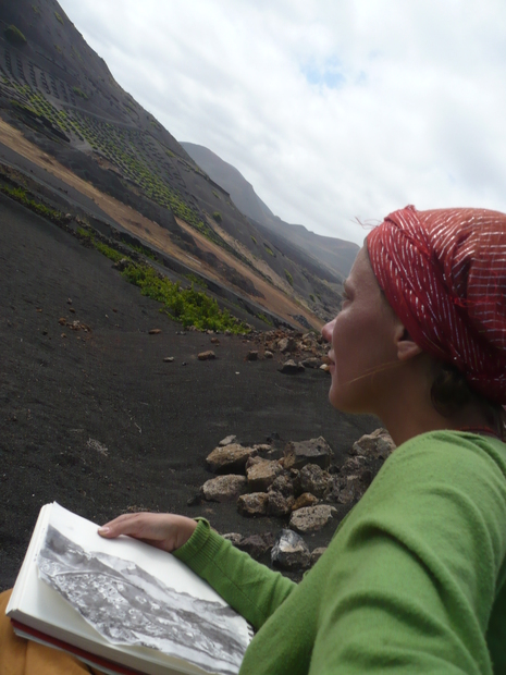 1tušo-akvarel vytvářený přímo v zobrazované krajině, čímž veškerá energie nasosaná z přírody do dílka vnořená jest..