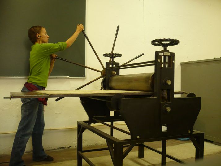 3silné a trpělivé paže :) otáčející volantem grafického lisu, určující konečný výsledek podoby tisku :)