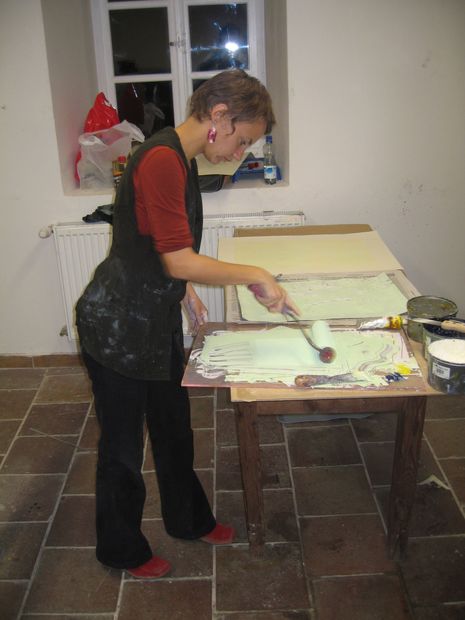C/ Válení namíchané barvy na matrici