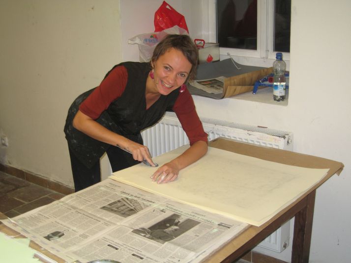 tisk lino-matrice na podkladový papír bez grafického lisu, s pomocí lžíce a vlastních sil :)