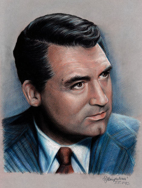 Cary Grant podruhé, původně jsem chtěla hnedka kreslit (tužkou) Ingrid Bergman nebo Ginger Rogers, ovšem touha ty zatracené pastelky znova zkusit byla silnější. Pastelky, které jsem sedm let po příšerně neúspěšném pokusu hodila do kouta a odmítala se k nim vrátit. No a teď je nějak nemůžu pustit... Takže, první pokus (protože ten starý se prostě počítat nedá).