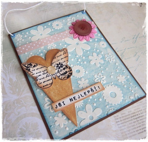 Přáníčko embossované Big shotem v kombinaci s Distress inkoustem Broken china