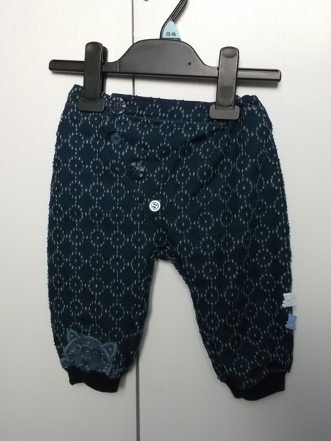 Slaboučká pružná riflovinka, v pase na gumu, u nohavic náplety