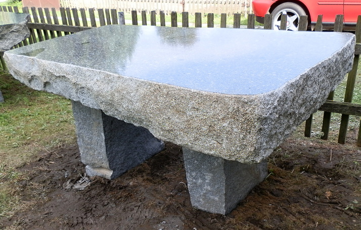 Stůl z masivní žuly. Povrch je leštěný.