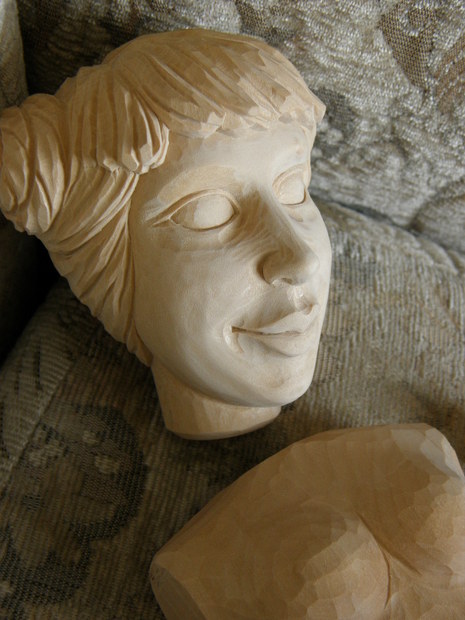 Loutka Francka právě vyřezaná, ještě nemalovaná, do představení O korunce Hadího krále