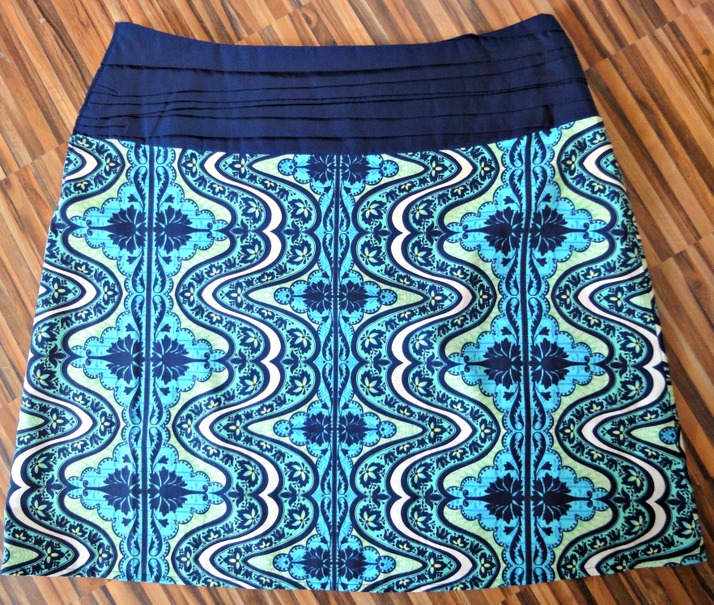 Nádherná látka z kolekce Lark nakoupená u Melluzínky se proměnila v krátkou sukýnku s řaseným sedlem.