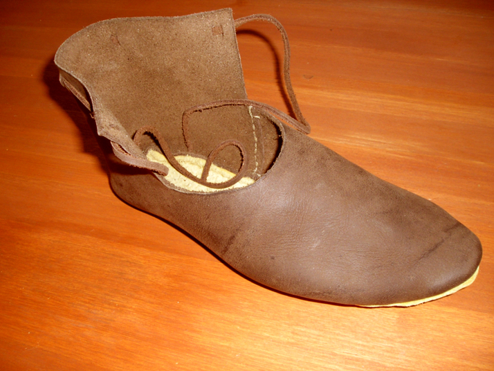 Slovanské boty, ručně šité. Podrážka z jeleního krku, svršek z hověziny.