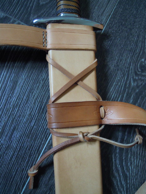 Dřevěný korpus potažený 1mm silnou hovězinou s opaskem na jednoduché zavazování podle vzoru z 11.stol.