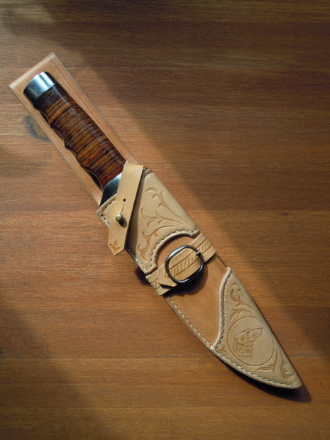 Kamarádovi jsem zdobil pochvu, kterou si sám šil. Opět provedeno za mokra parohovým hrotem.