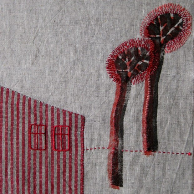 ... textilní aplikace, výšivka a tisk z formičky ... vše na lněném plátně