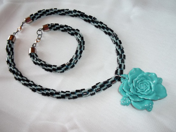 tyrkysová souprava s růží