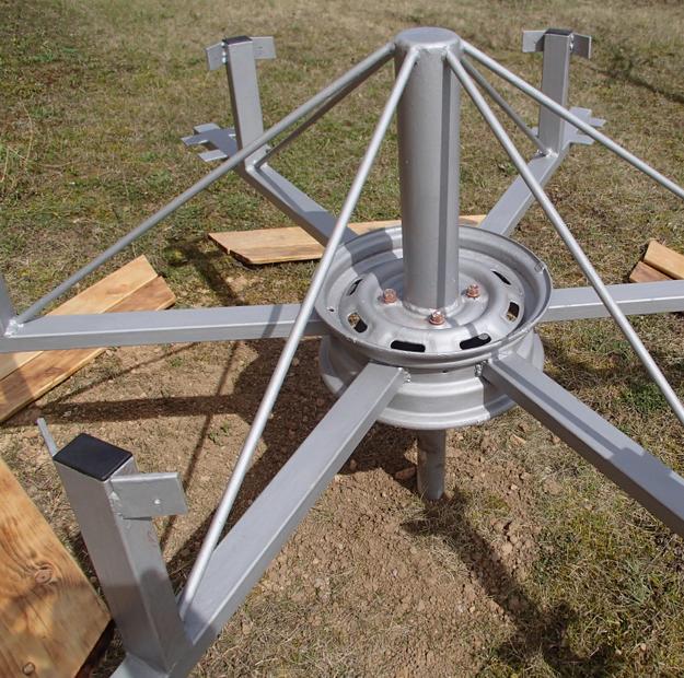 montáž upravených a povrchovou barvou natřených prken na kolotoč