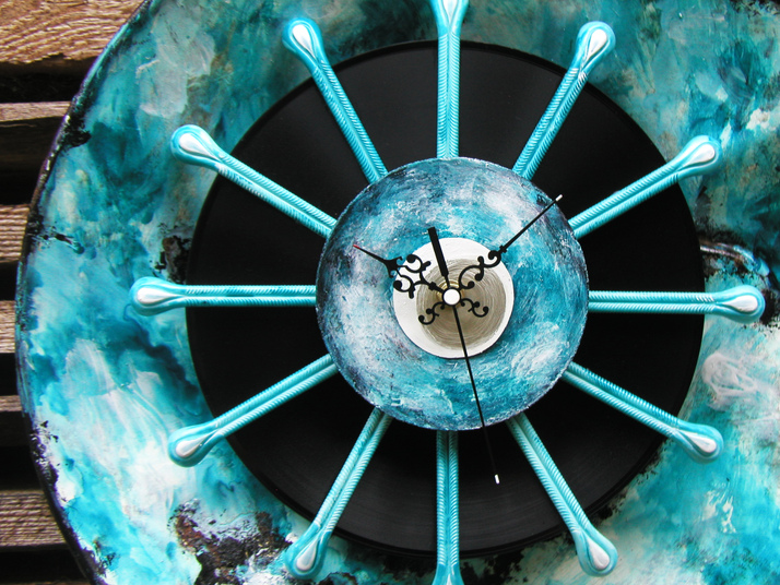 Autorské hodiny s názvem Koloběh vody vznikaly přirozeně během nedělního dne jako podvědomá reakce na přírodní jevy, které nám v posledních dnech a týdnech ukázaly svoji sílu a nespoutanost, s kterou vůle člověka nic neudělá. Výchozím materiálem se staly několik let sbírané a otupené holící strojky, gramofonová deska po dědečkovi, brusný kotouč zbroušený na kost, starý zrezavělý kryt od lampy, rukáv z dávno již přešité košile, hliníkové víčko, akrylové a balakrylové barvy a nový, funkční hodinový strojek + ručičky.