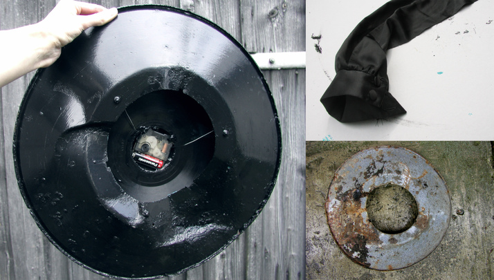 Autorské hodiny s názvem Koloběh vody vznikaly přirozeně během nedělního dne jako podvědomá reakce na přírodní jevy, které nám v posledních dnech a týdnech ukázaly svoji sílu a nespoutanost, s kterou vůle člověka nic neudělá. Výchozím materiálem se staly několik let sbírané a otupené holící strojky, gramofonová deska po dědečkovi, brusný kotouč zbroušený na kost, starý zrezavělý kryt od lampy, rukáv z dávno již přešité košile, hliníkové víčko, akrylové a balakrylové barvy a nový, funkční hodinový strojek + ručičky.