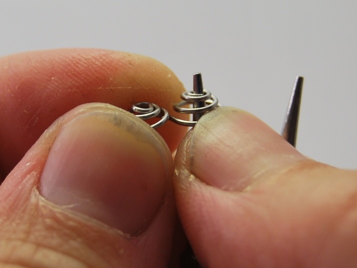 Střed jedné spirálky nasaďte na špičku kulatých kleští a mírným tlakem pravé ruky vytlačte střed vzhůru. Opakujte i na druhé straně