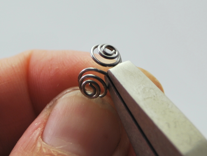 Plochými kleštěmi pevně uchopte vnější okraj jedné spirálky co nejblíže středu. Protitlakem vytvořte uzavřenou klícku.