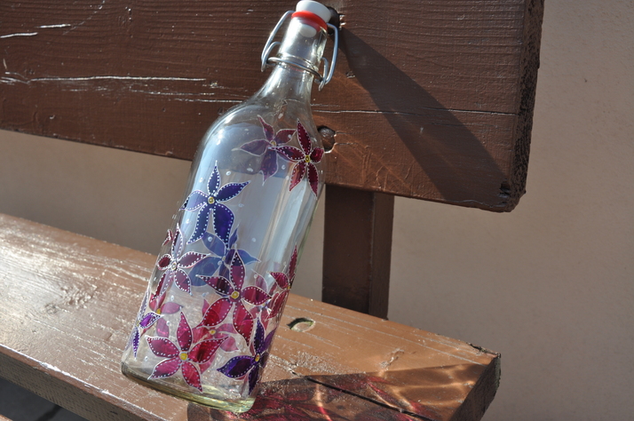 Malováno speciální barvou na sklo, není vhodné umývat v myčce, nebo v příliš vařící vodě.!!!
