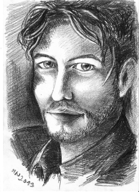 Formát A4, kresba tužkou na strukturovaný papír typu Antik. Kresba podle fotografie, model Jackson Rathbone, upraveno pro účely ilustrace k textu.