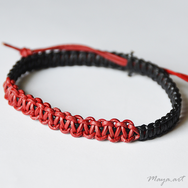 Drhaný náramek z kožených šňůr černé a červené barvy patří do kolekce náramků "UNISEX".