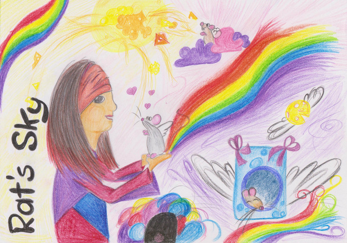 potkaní nebe, malováno v době kdy mi umřel jeden z potkanů, tak na jeho cestu nahoru