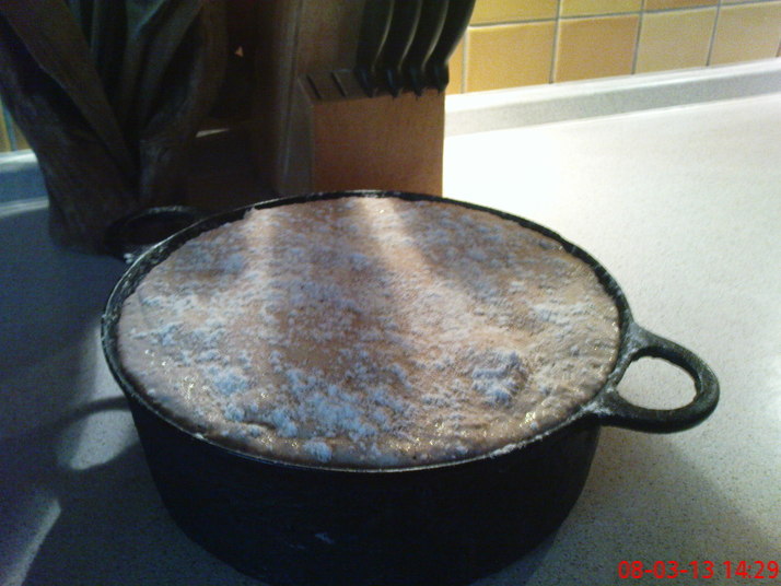 Domácí kváskový chléb. Tady je jž "vykynutý" smaotné kynutí podle domácí teploty je u mně cca 5hod, ale může být i 20hod. ale i méně, samotná výroba kvásku je už na dny :-) ale výborné. čas jím neztratíte, ba Vás obohatí ..