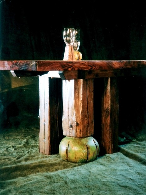 konferenční stůl na zakázku ze starých trámů, patinovaná borovice