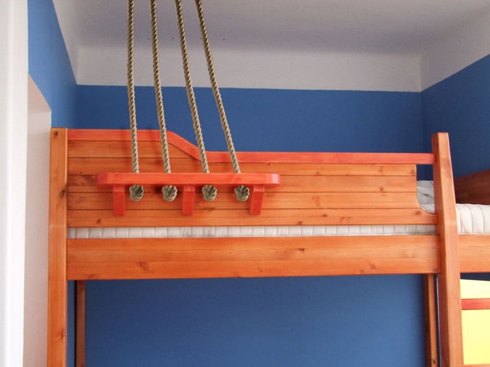 vyvýšená dětská postel pro vyznavače zámořských objevů a dobrodružných plaveb korzárů, mořený smrk