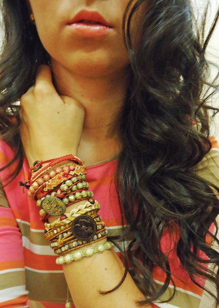 Kombinace moderních náramků vyrobených z rozmanitých materiálů různými technikami. Miluji různorodé kombinace...:)