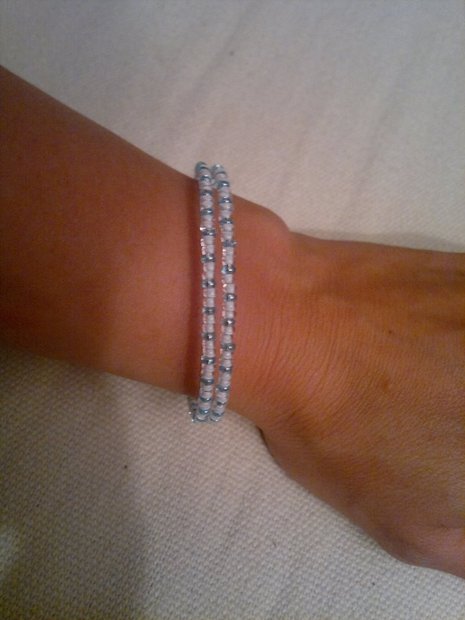 náramek jemný modro bílí na pružince ruční práce 40-,