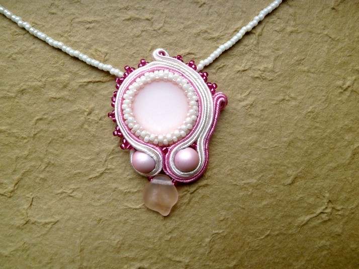 Originální kabošon Polaris, Toho round, textilní prýmky, plastové korálky, mačkaný lístek