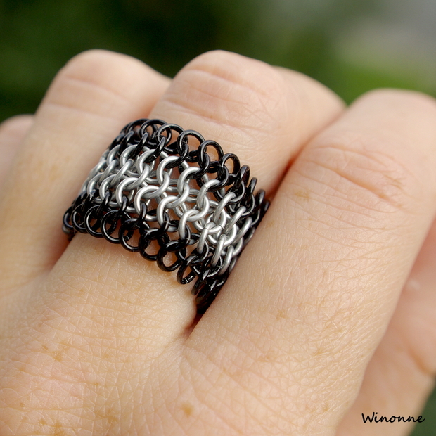 Prsten dělaný technikou Chainmail - kroužkování.