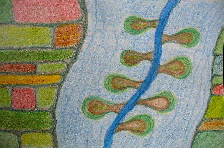 Měla to být krajina z ptačího pohledu - teď mi to spíš připadá jako rostoucí plíseň ve spáře ve zdi