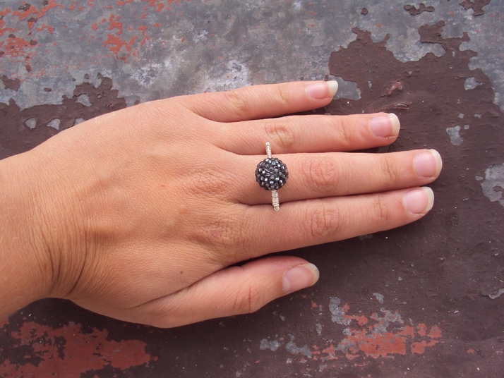 Obšitá kulička, postříbřený drát. První pokus o wire-wrapping :)