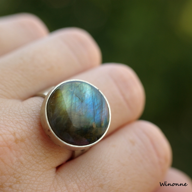 Prsten dělaný tradičními šperkařskými technikami. Do obroučky je vsazen nádherný kabošon labradoritu. Nebylo použito žádného polotovaru.