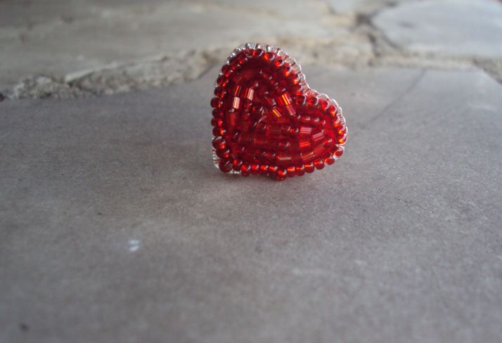 korálková výšivka na plsti, kroužek z postříbřeného drátku