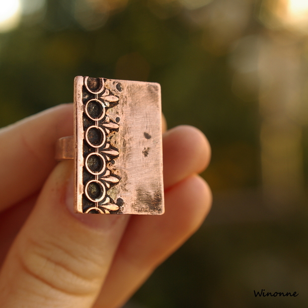 Prsten z mědi dělaný klasickými zlatnickými technikami.