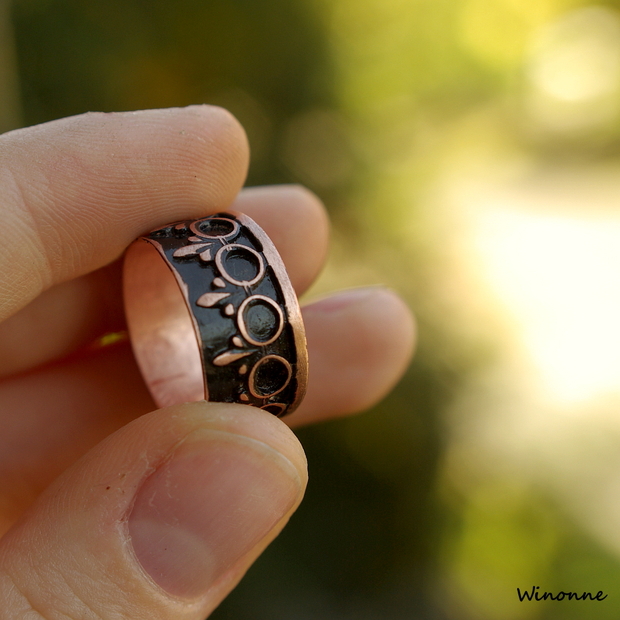 Prsten z mědi dělaný klasickými zlatnickými technikami.