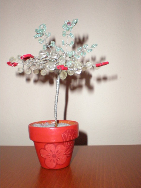 Stromeček vytvořen z drátků a korálků.