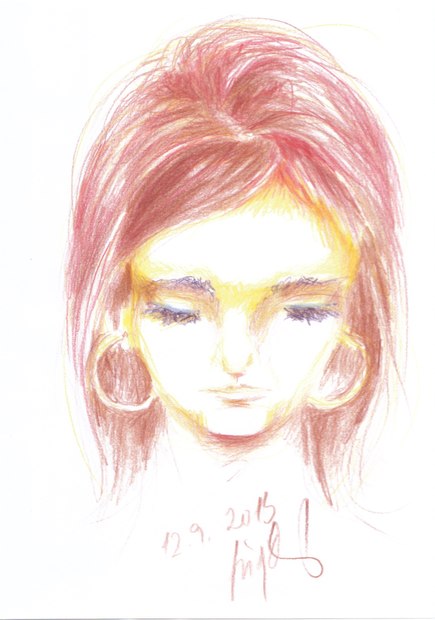 Dneska superbleskový náčrt podle dcery, když se ráno líčila před odjezdem...