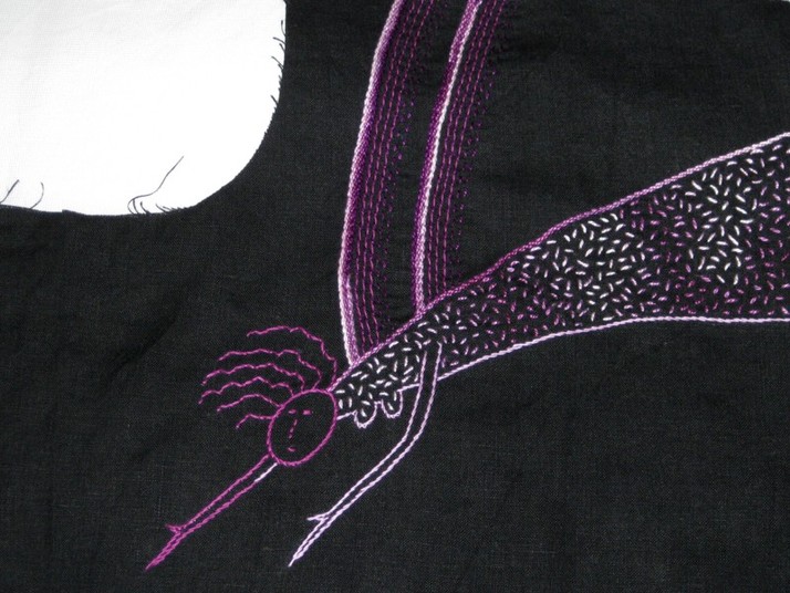 Vyšíváno na lněnou halenu melírovanými bavlnkami.