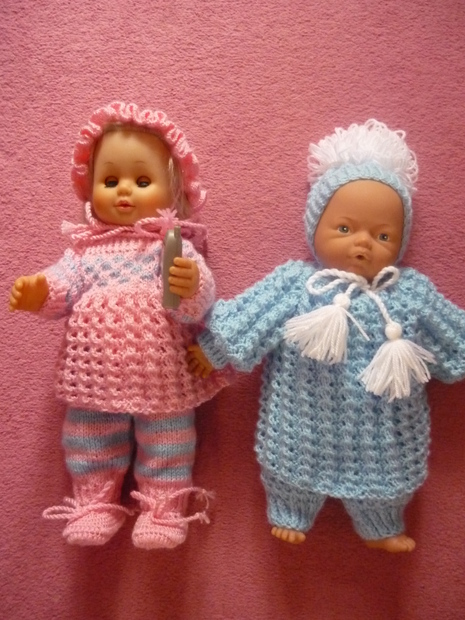 Obleček pro panenku - holčičku velkou 40 cm.Kombinace dvou technik - pletení a háčkování. Vyrobeno z jemného materiálu, určeného přímo pro miminka.