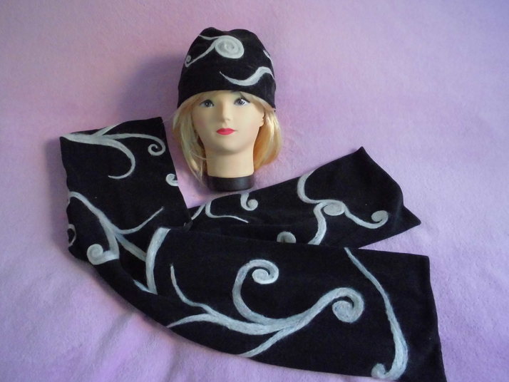 Flísová šála s čepicí pro kamarádku.Suché plstění.
