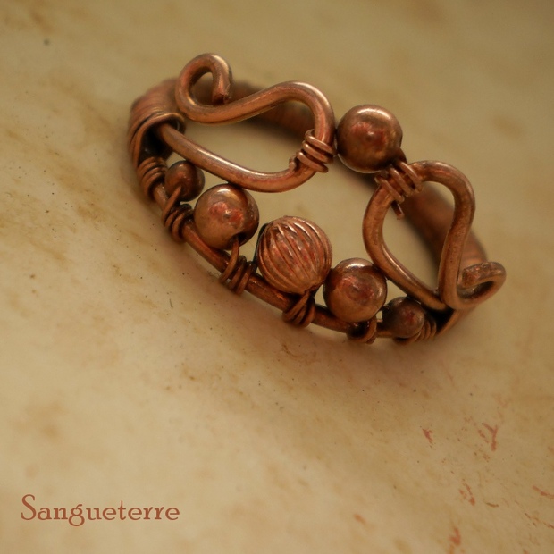 Měděné korálky - vlaštovky na hřadě, kuličky zralého vína.