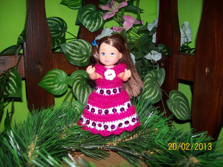 Dlouhé šatičky pro panenku Evičku, zdobené bohatě flitry.
