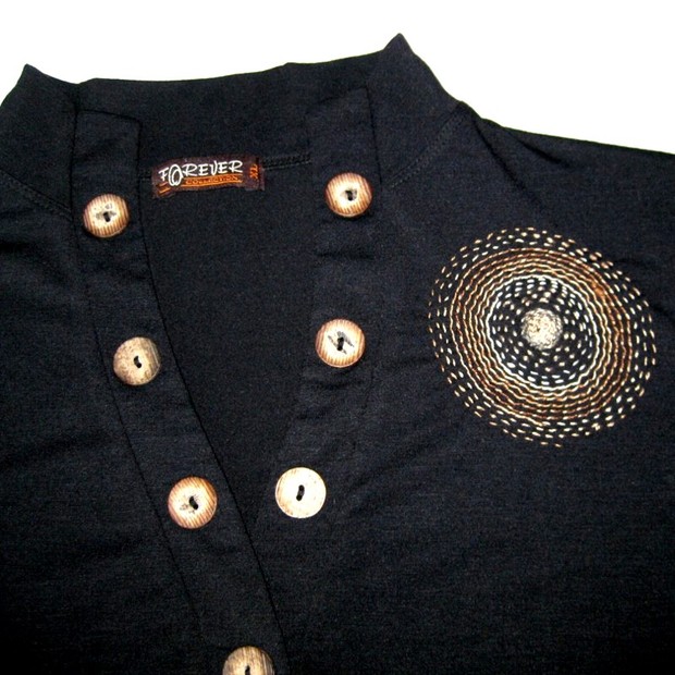 Výšivka na bavlněném tílku s dřevěnými knoflíky