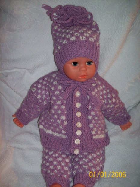 Vlněná vyplétaná soupravička pro panenku mimino.
