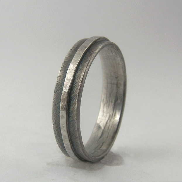 Stříbro - texturovaný patinovaný podklad, tepaná leštěná vystouplá část
