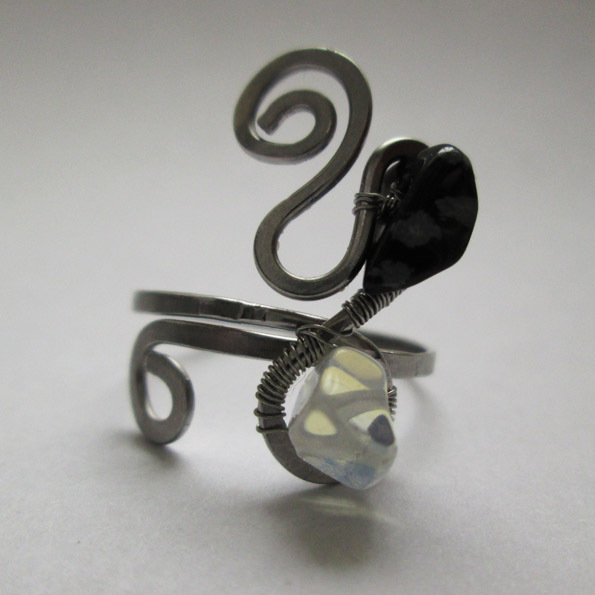 Vlockovy obsidian a adular na nerezu
